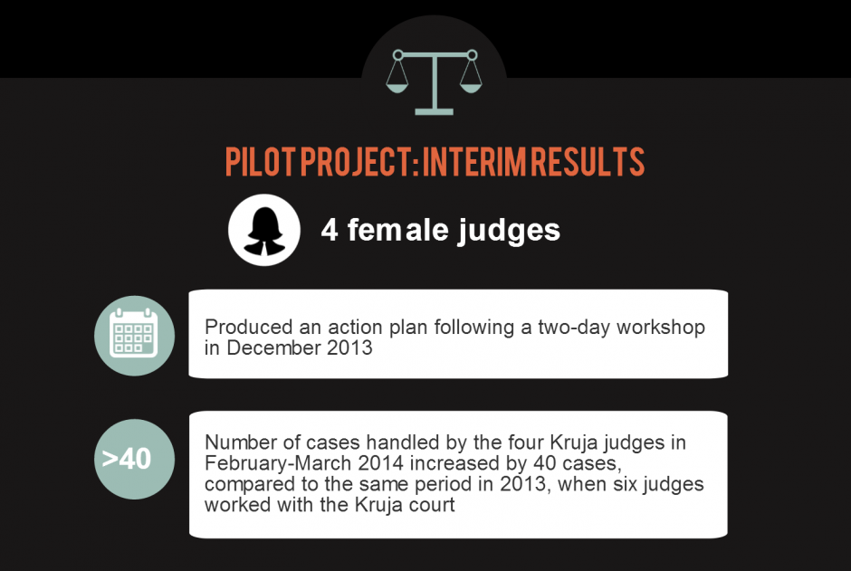 Interim results of the pilot project called to increase the efficiency and accessibility of trials in Kruja court, Albania.