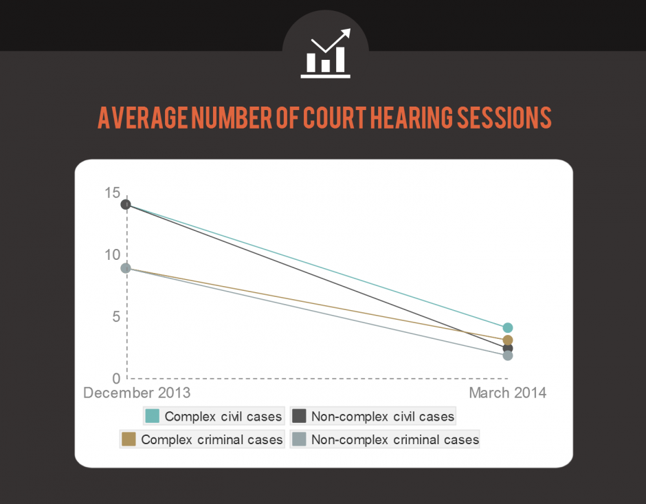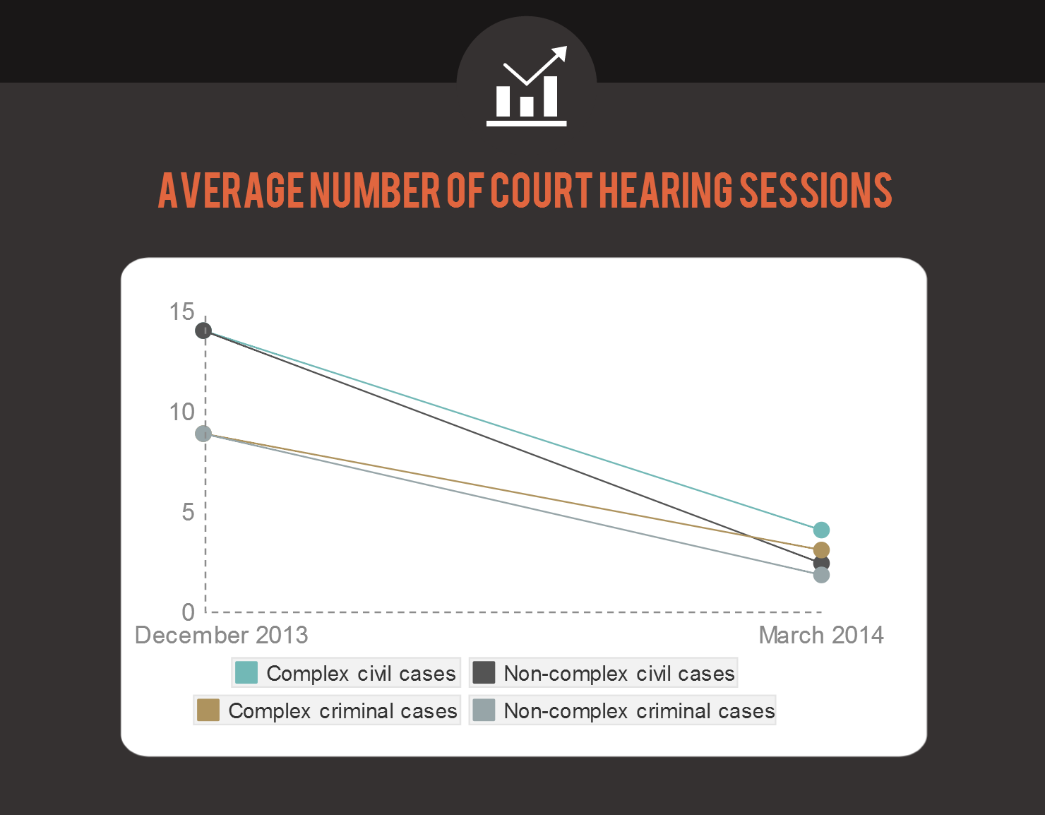 Comparison of average number of court hearing sessions in Kruja, Albania between December 2013 and March 2014.
