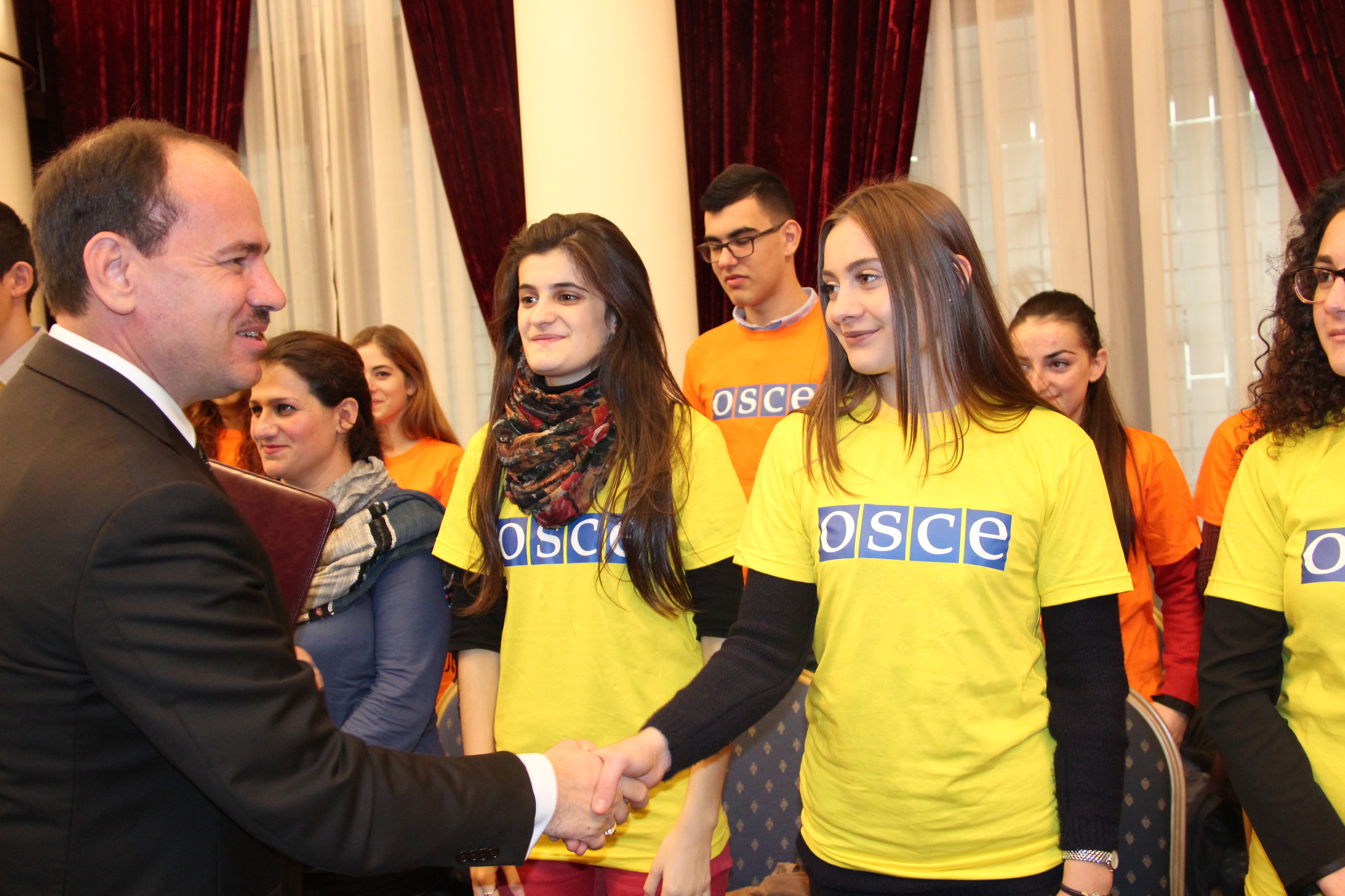 Albania's President Bujar Nishani meets with high-school students who participated in an OSCE project on active citizenship, Tirana, 2 December 2014.