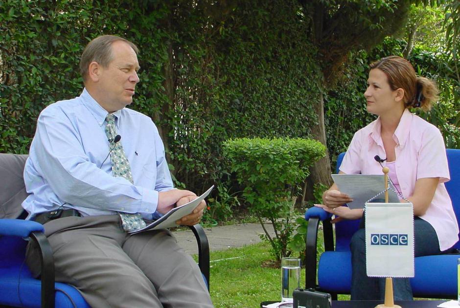 Head of the OSCE Presence in Albania, Ambassador Osmo Lipponen, during an interview with the national broadcaster TV Klan, Tirana, 10 May 2003.