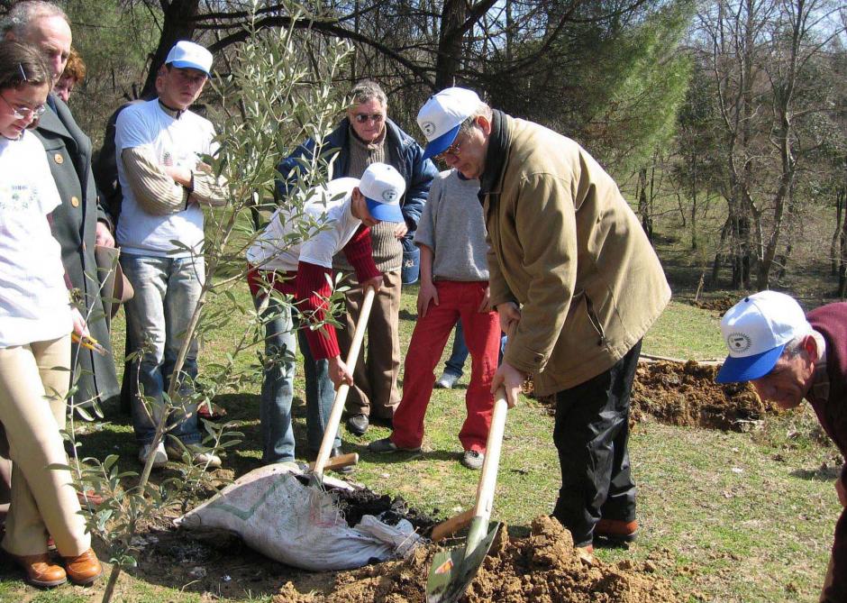 Head of the OSCE Presence in Albania, Ambassador Osmo Lipponen, plants trees with school children in an environmental event organized by the Presence and the Ecological Club, Tirana, 13 March 2004.