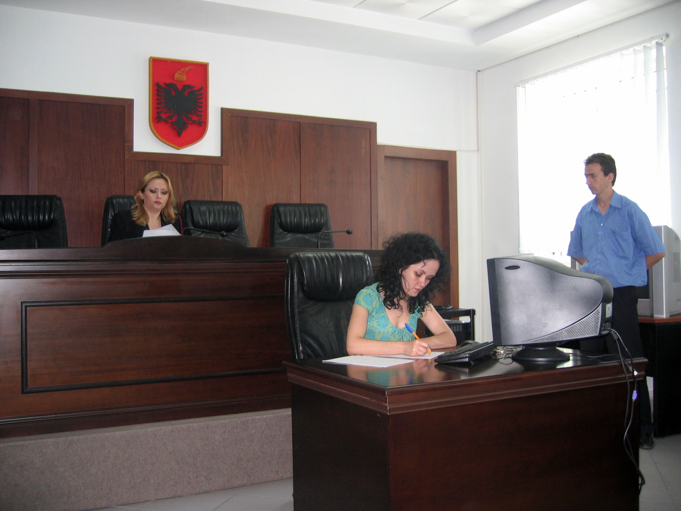 A secretary takes notes during a trial session at the Albanian First Instance Court on Serious Crimes, Tirana, July 2006.