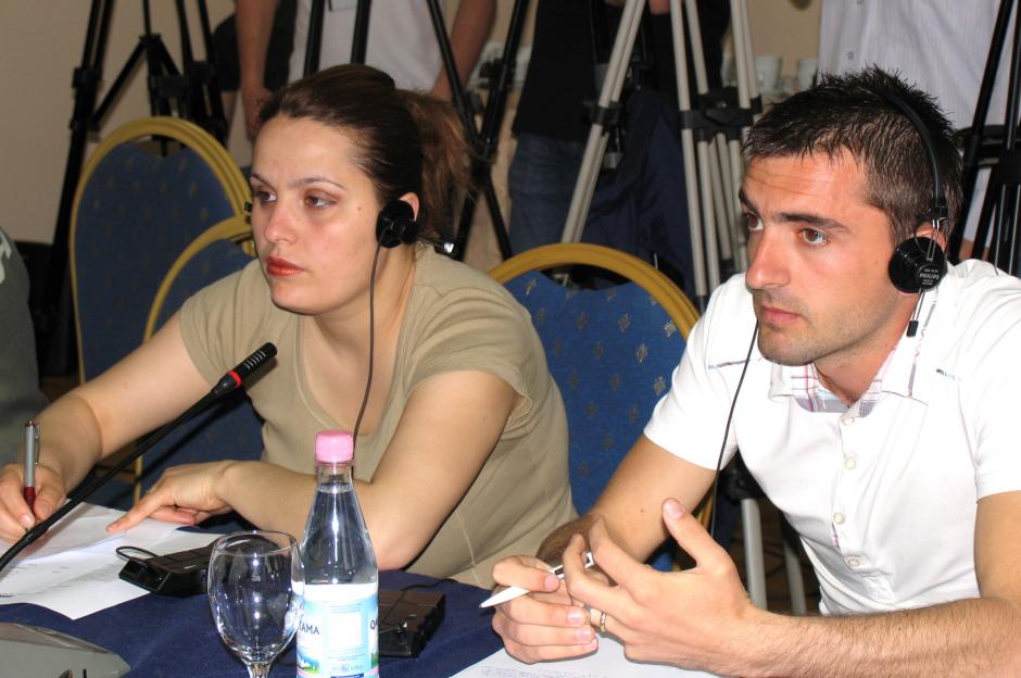 Albanian journalists participate in a conference on the World Press Freedom Day organized by the OSCE Presence to discuss the current media situation in Albania, Tirana, 3 May 2010.