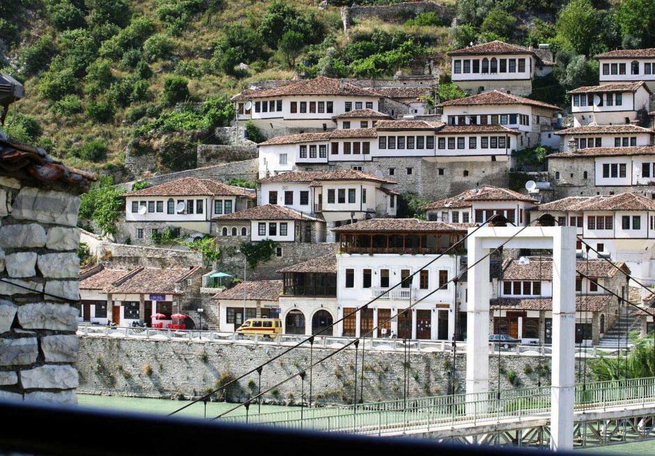 A characteristic old neighbourhood in the 2,400-year-old city of Berat, Albania, 2007.