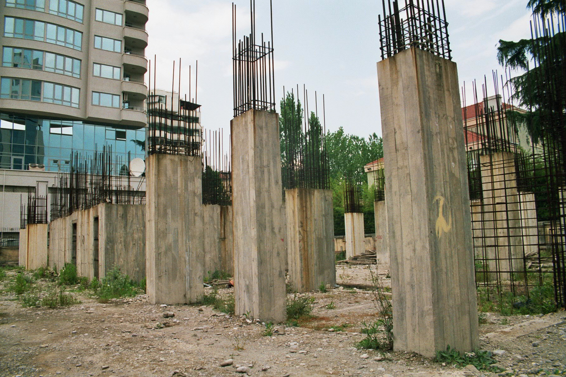A construction site in Tirana, Albania, where work has stopped until the land ownership dispute is settled, 26 May 2005.