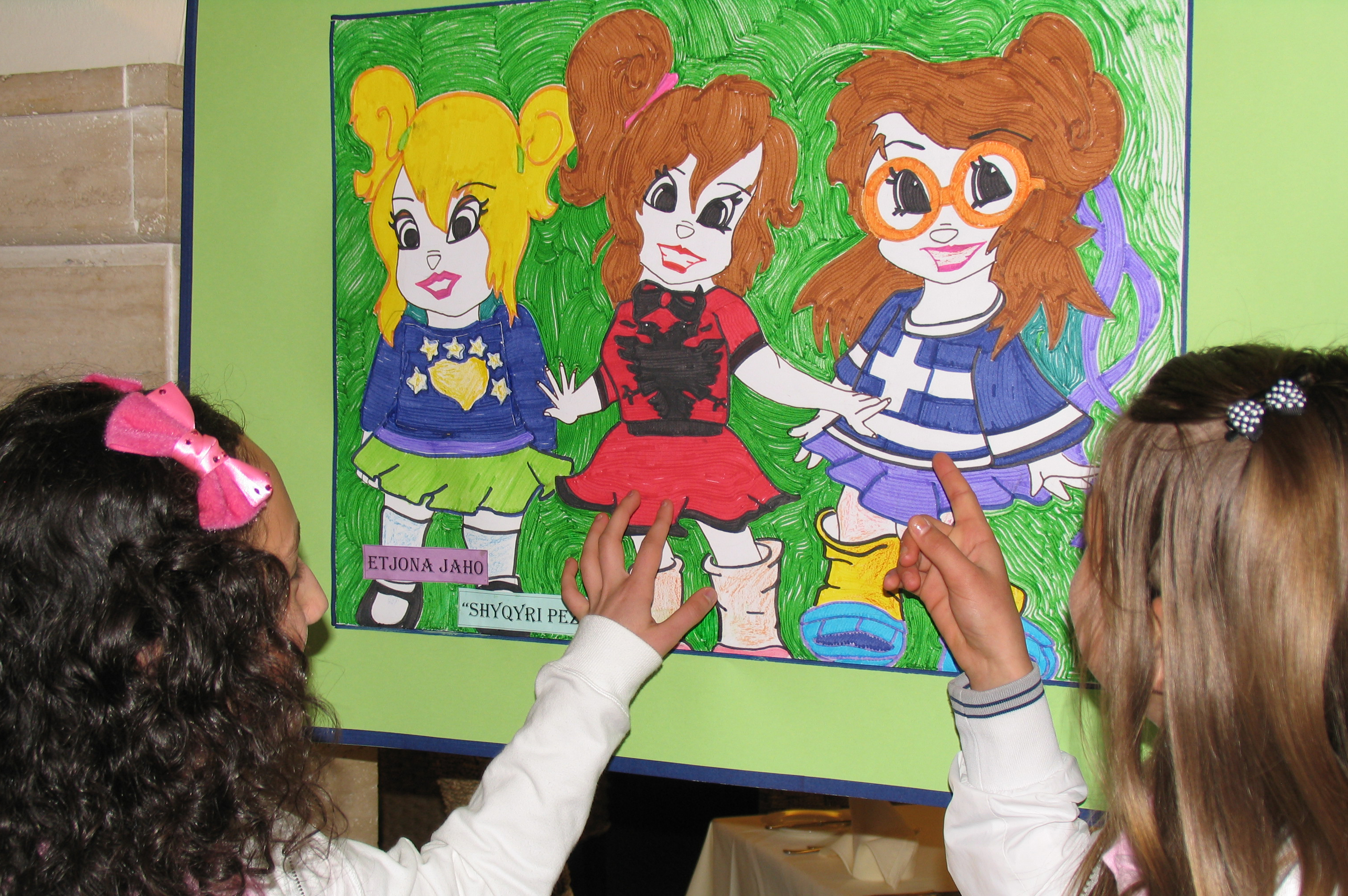 Schoolchildren looking at a picture made for an anti-discrimination event hosted by the OSCE Presence in Albania and the Commissioner for Protection from Discrimination, Tirana, 11 April 2011.