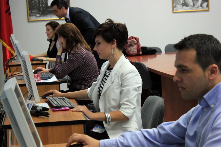 Albanian journalists work in the new media room in the Parliament, created as part of an OSCE Presence in Albania project, Tirana, 23 May 2012.