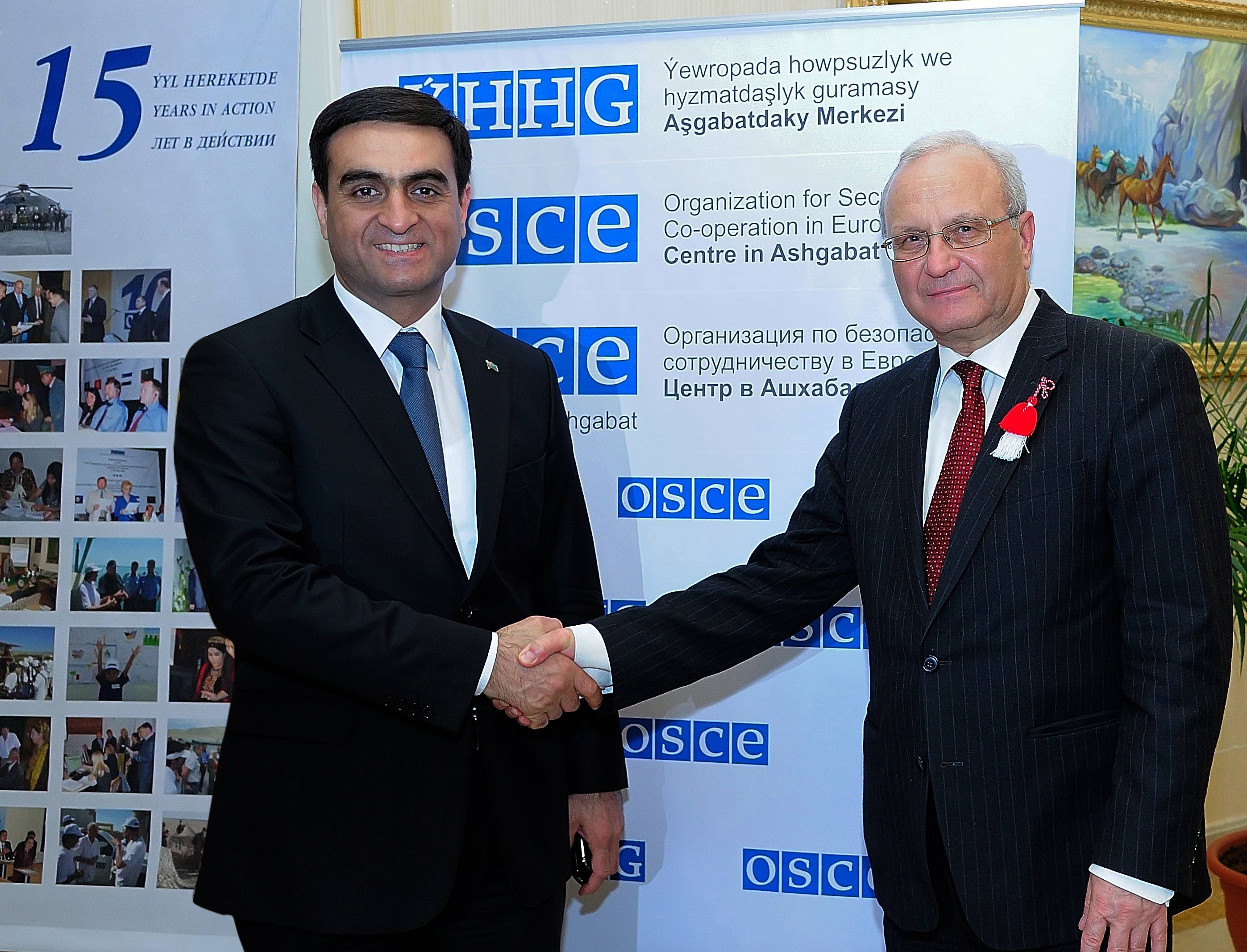 Vepa Hadjiyev, Deputy Foreign Minister of Turkmenistan and Ambassador Ivo Petrov, Head of the OSCE Centre in Ashgabat at the ceremony marking the 15th anniversary of the OSCE Centre in Ashgabat, 5 March 2014.