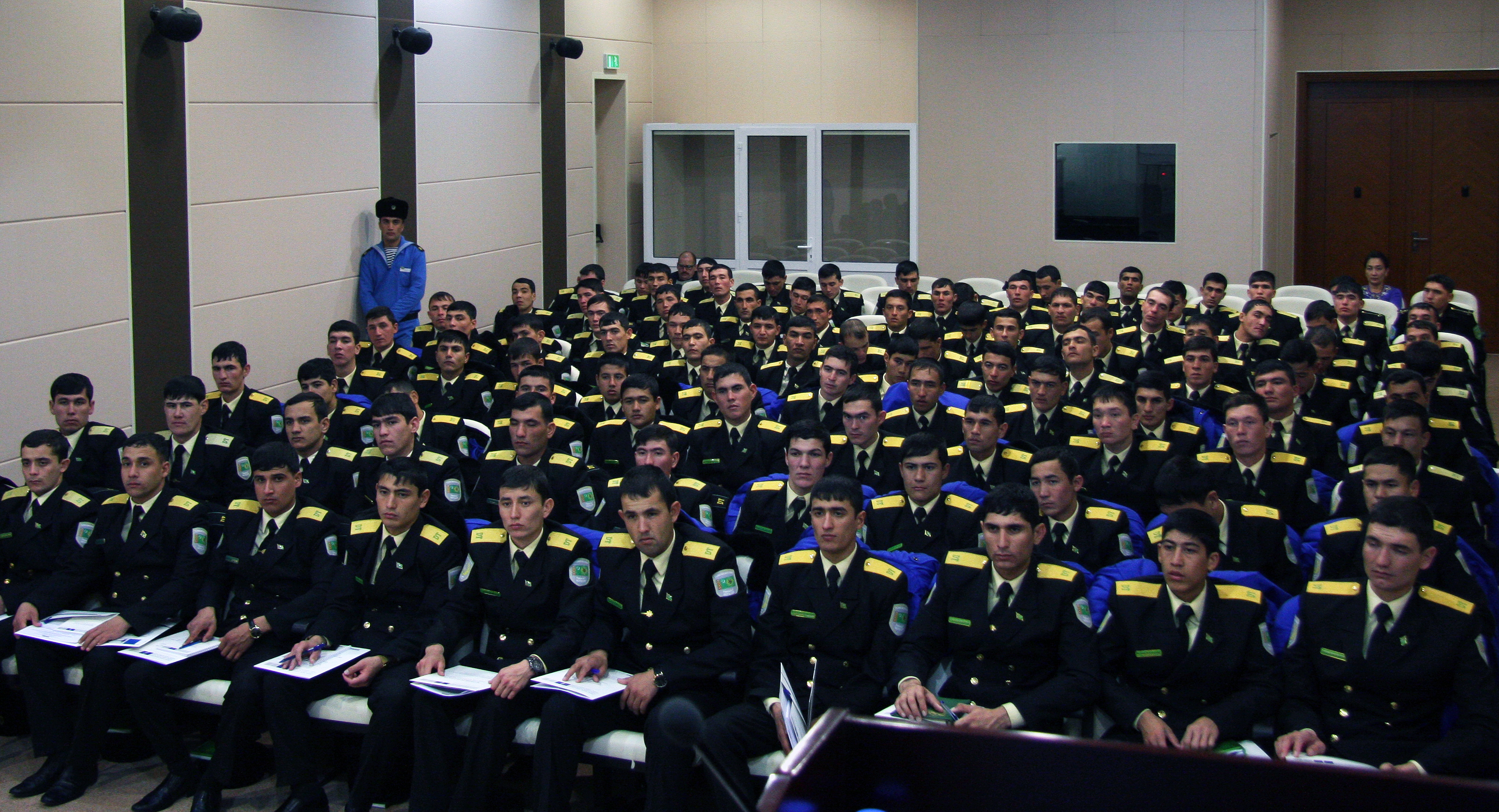 Cadets at the Navy Institute of Turkmenistan’s Defence Ministry during an opening of the OSCE-organized training lectures on Modern Land and Maritime Border Security and Management procedures and mechanisms, Turkmenbashi, 14 December 2015.