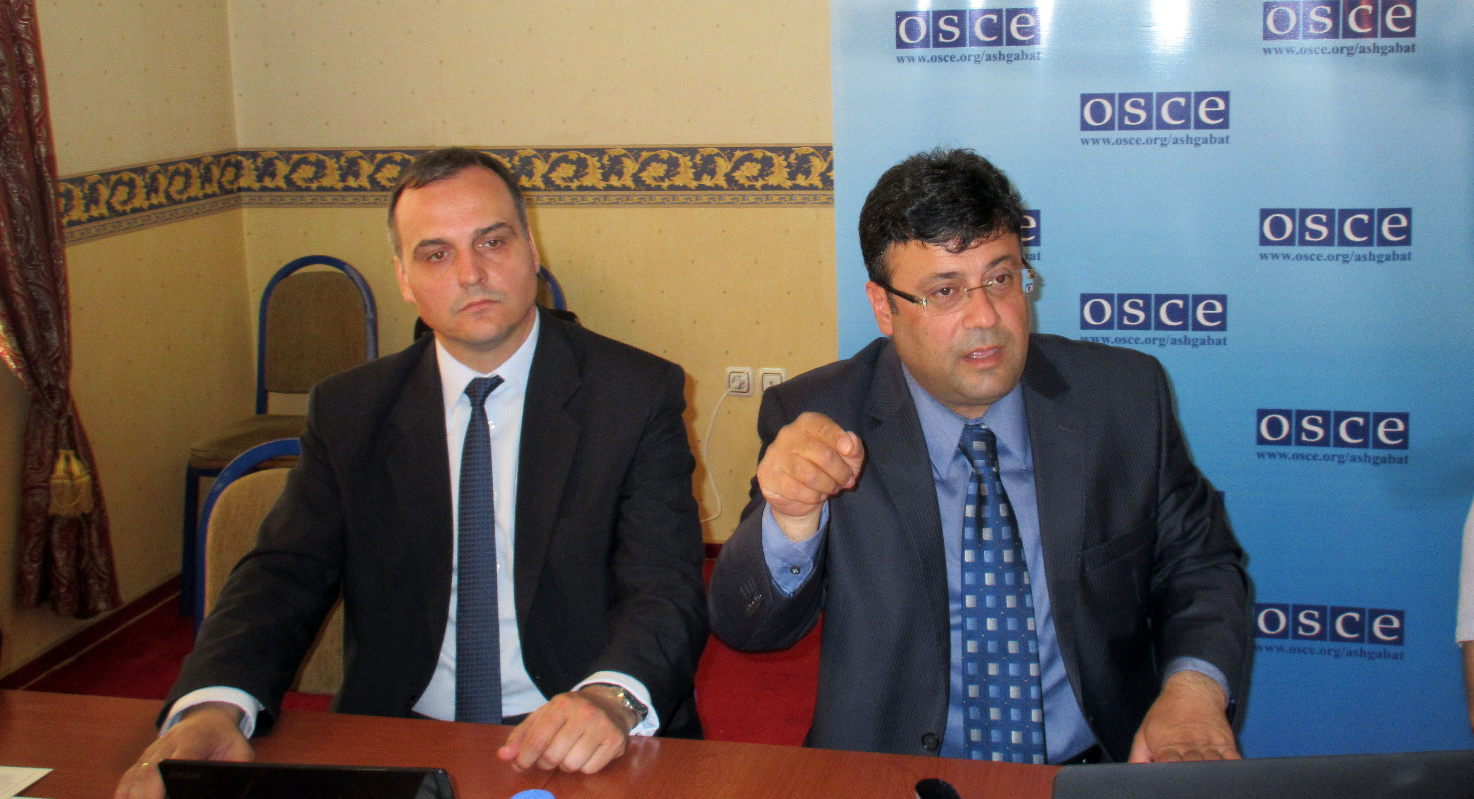 International expert from Turkey Tuncay Durna presenting an overview of the global road safety situation at an OSCE-organized seminar on traffic management and road safety, Mary, 28 April 2016.
