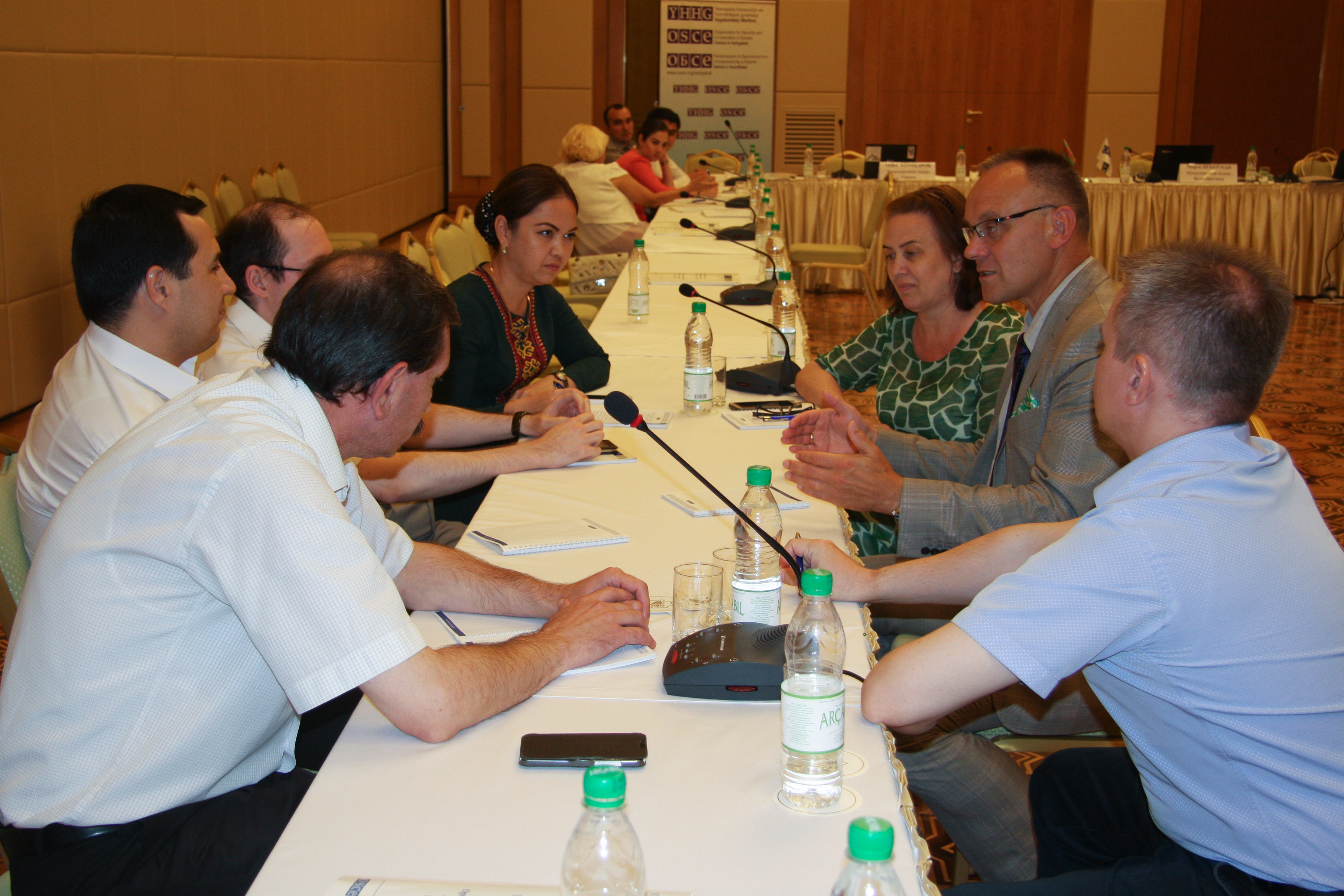 Marek Bekerman (2nd from right), lecturer in International Journalism and journalism education expert, discusses with participants at the OSCE-organized training course on news opportunities for communication through online resources, 8 September 2016.