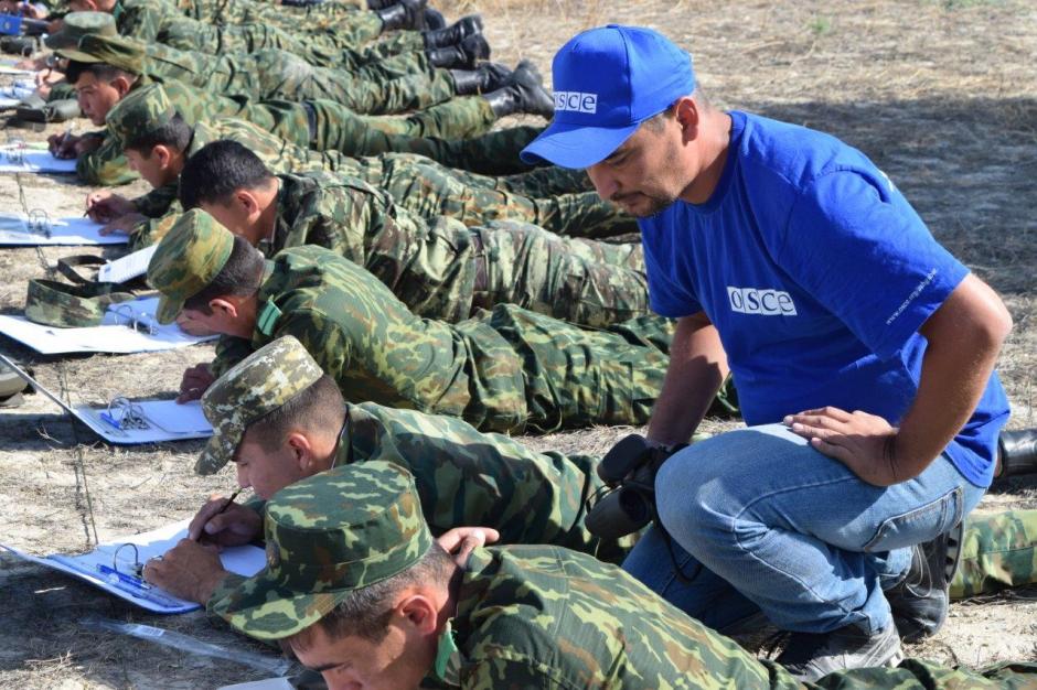 Participants practice sketch drawing as part of an OSCE-organized training on basic patrolling skills, Turkmenistan, 20 June 2016.