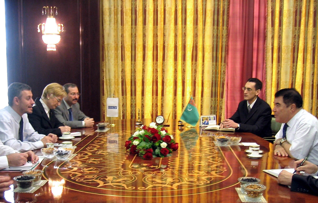 OSCE Chairman-in-Office Solomon Passy (left) during a meeting with Turkmenistan President Saparmurat Niyazov (right) in Ashgabat, 9 April 2004.