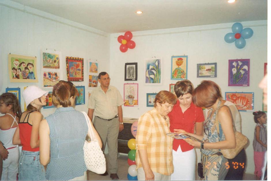 Visitors in a children's picture exhibition organized by the OSCE Centre in Ashgabat, June 2004.