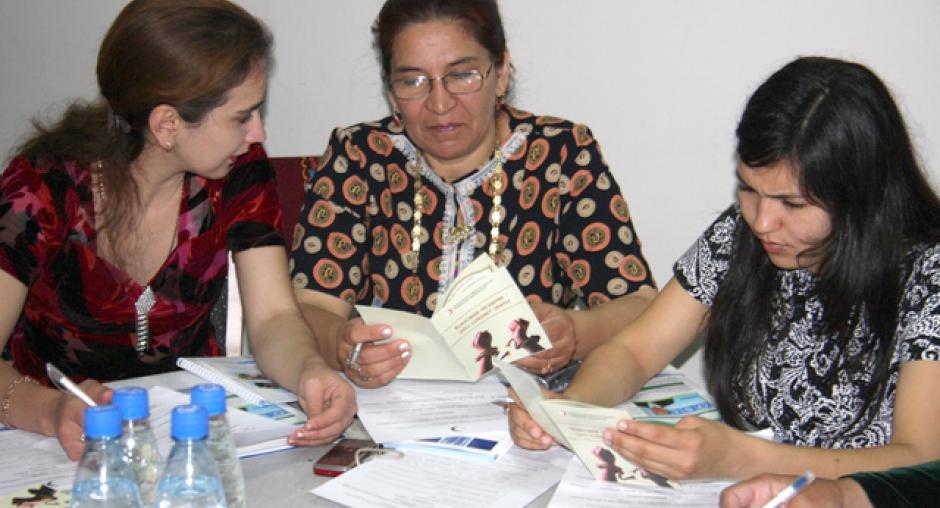 The course is for 33 volunteers and staff from the National Red Crescent Society of Turkmenistan (NRCST) and other civil society organizations representing Turkmenistan's five regions to teach others about preventing human trafficking.