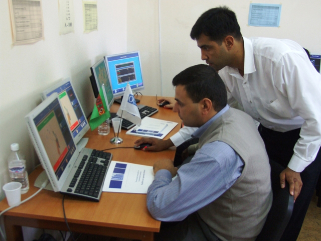Participants at an OSCE-sponsored training course for airport officials on checkpoint and x-ray interpretation that aims to improve airport security, in Ashgabat, 15 October 2008.