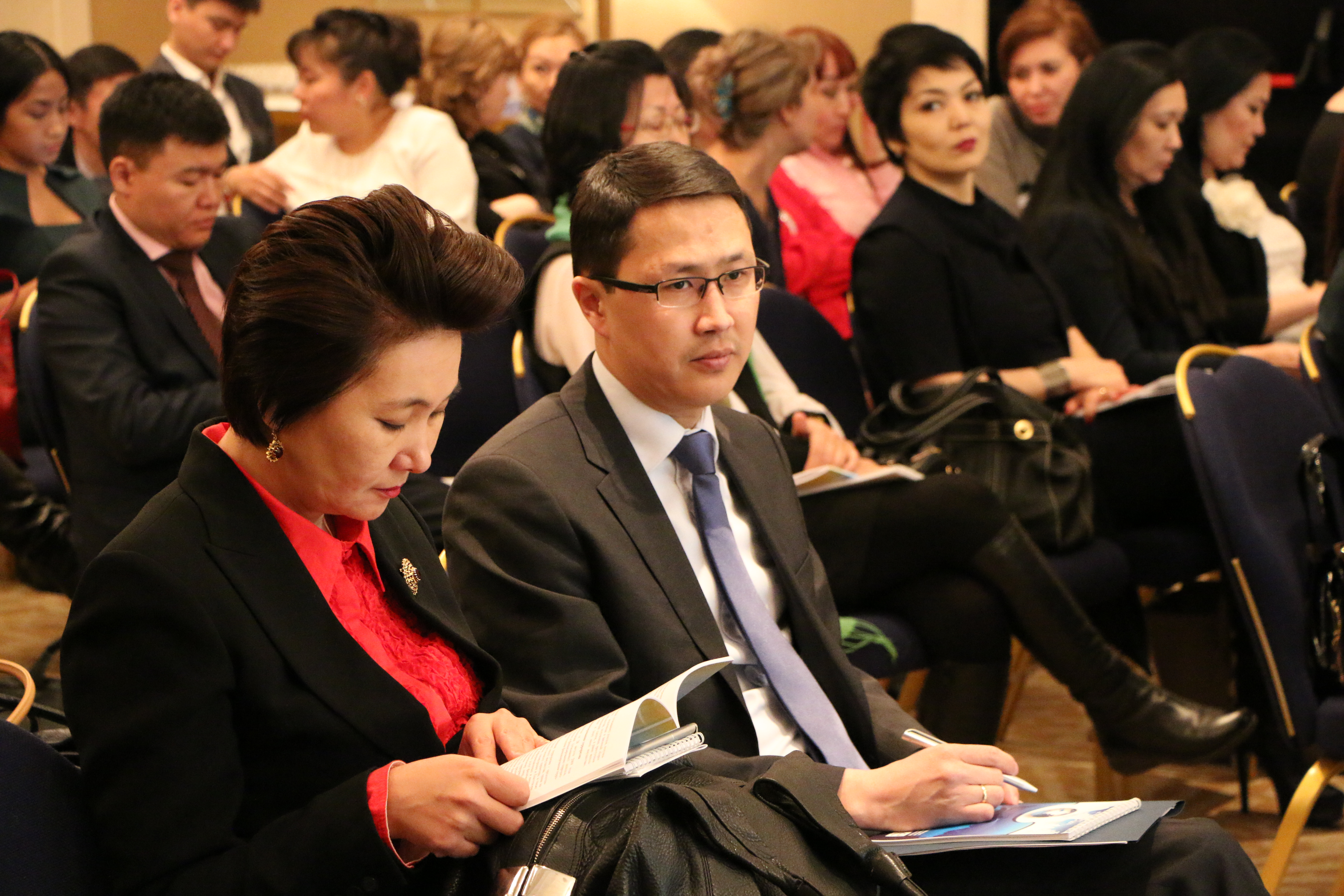 Representatives of the financial and non-financial sectors duiring a presentation of a guidebook on anti-money laundering and countering the financing of terrorism, Astana, 8 April 2015.