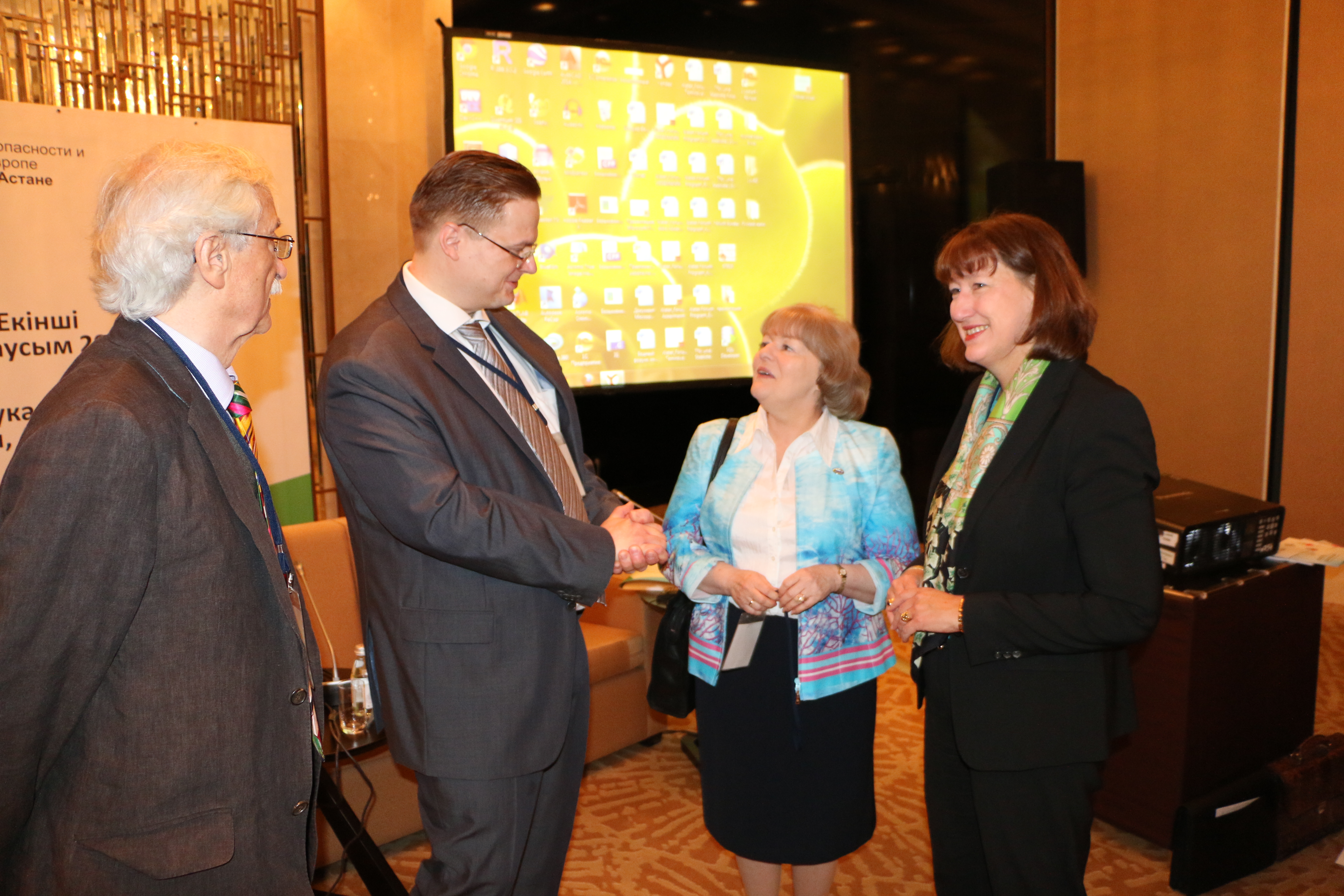 Head of the OSCE Office in Astana Ambassador Natalia Zarudna talks with the management of Kazakh-German University, Konrad Adenauer Foundation in Kazakhstan and German Association of Energy and Water Industries, Astana, 4 June 2015.