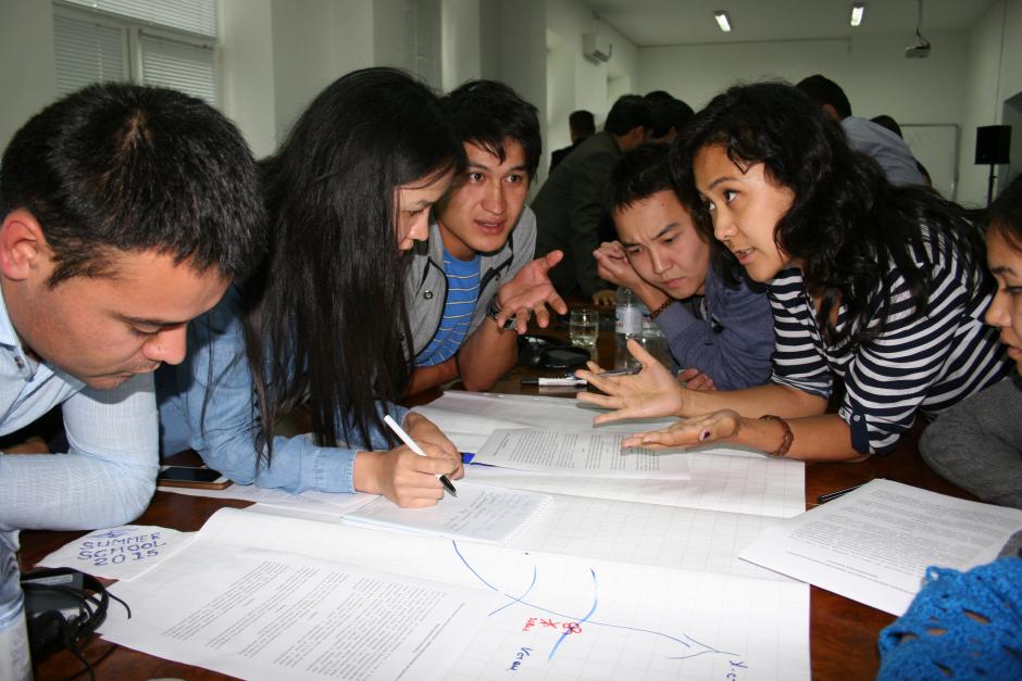 Students at the practical exercise of the summer school on the water management, Almaty, 26 June 2015.