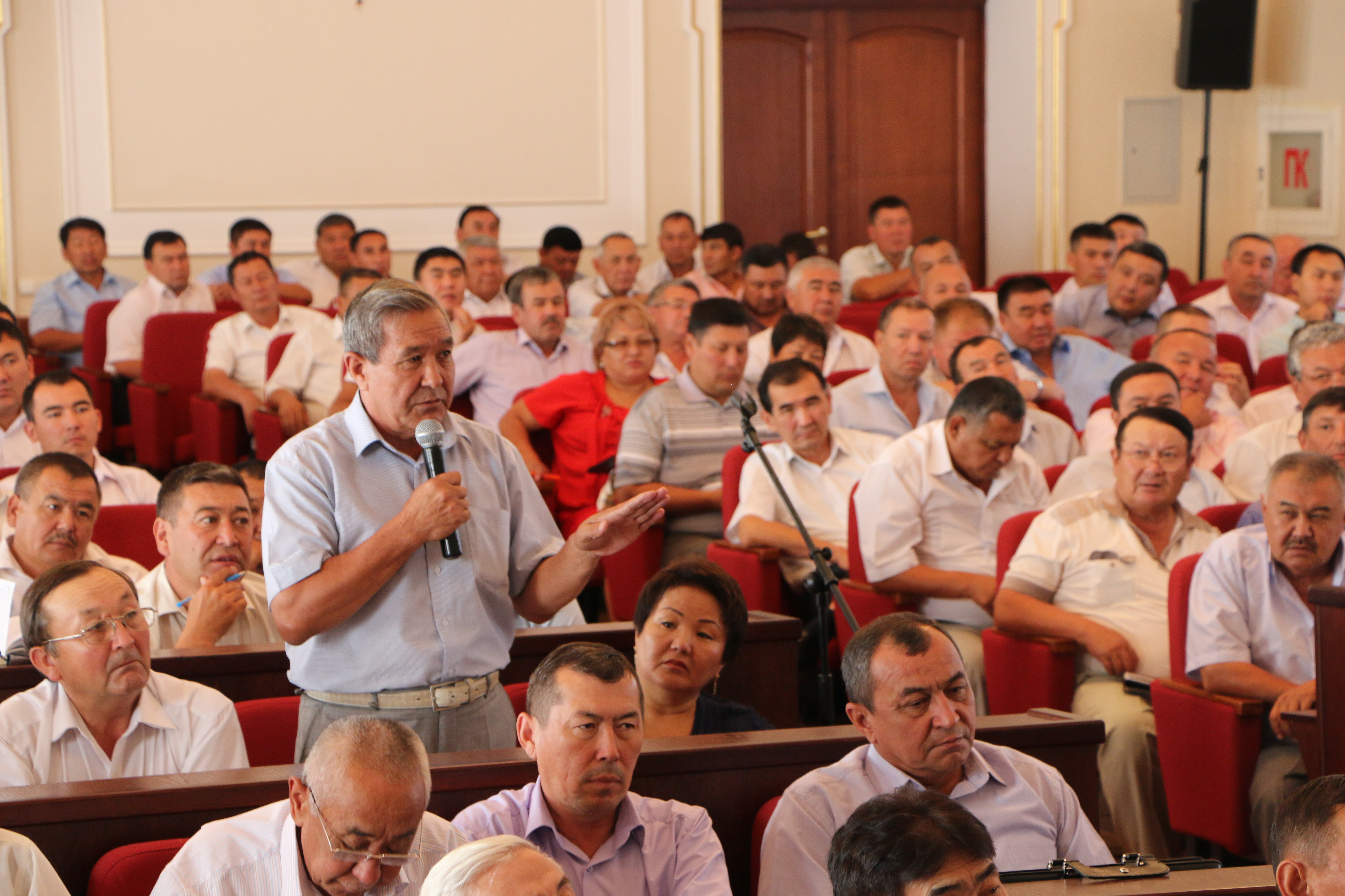 Seminar participants discussing the implementation of local self-governance reform in Kazakhstan and ways to further develop it, Shymkent, 10 July 2015.