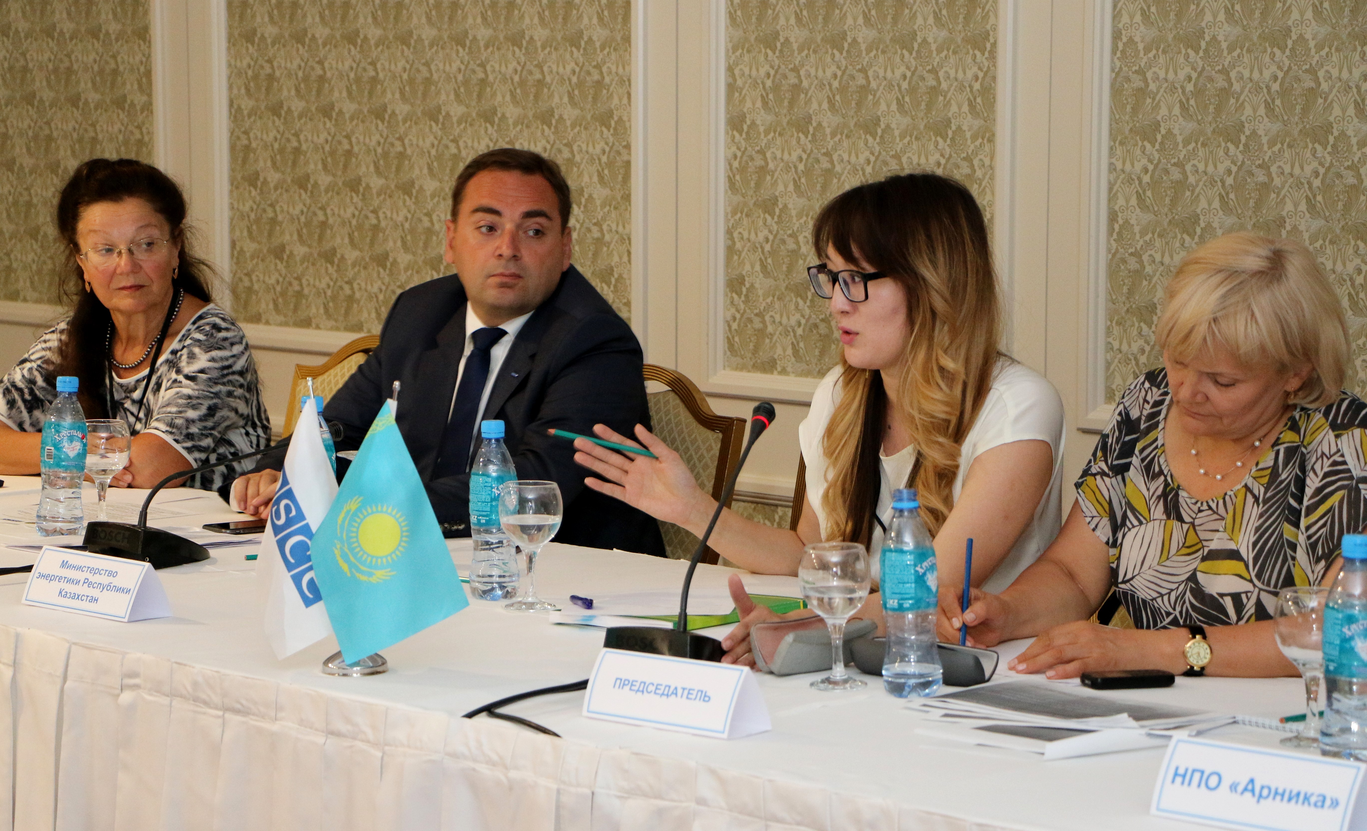 Ainel Rymbayeva, Head of Division, Department of the environmental monitoring and information of the Energy Ministry, speaks about the cooperation opportunities of the Ministry with Aarhus centres, Astana, 15 July 2016.