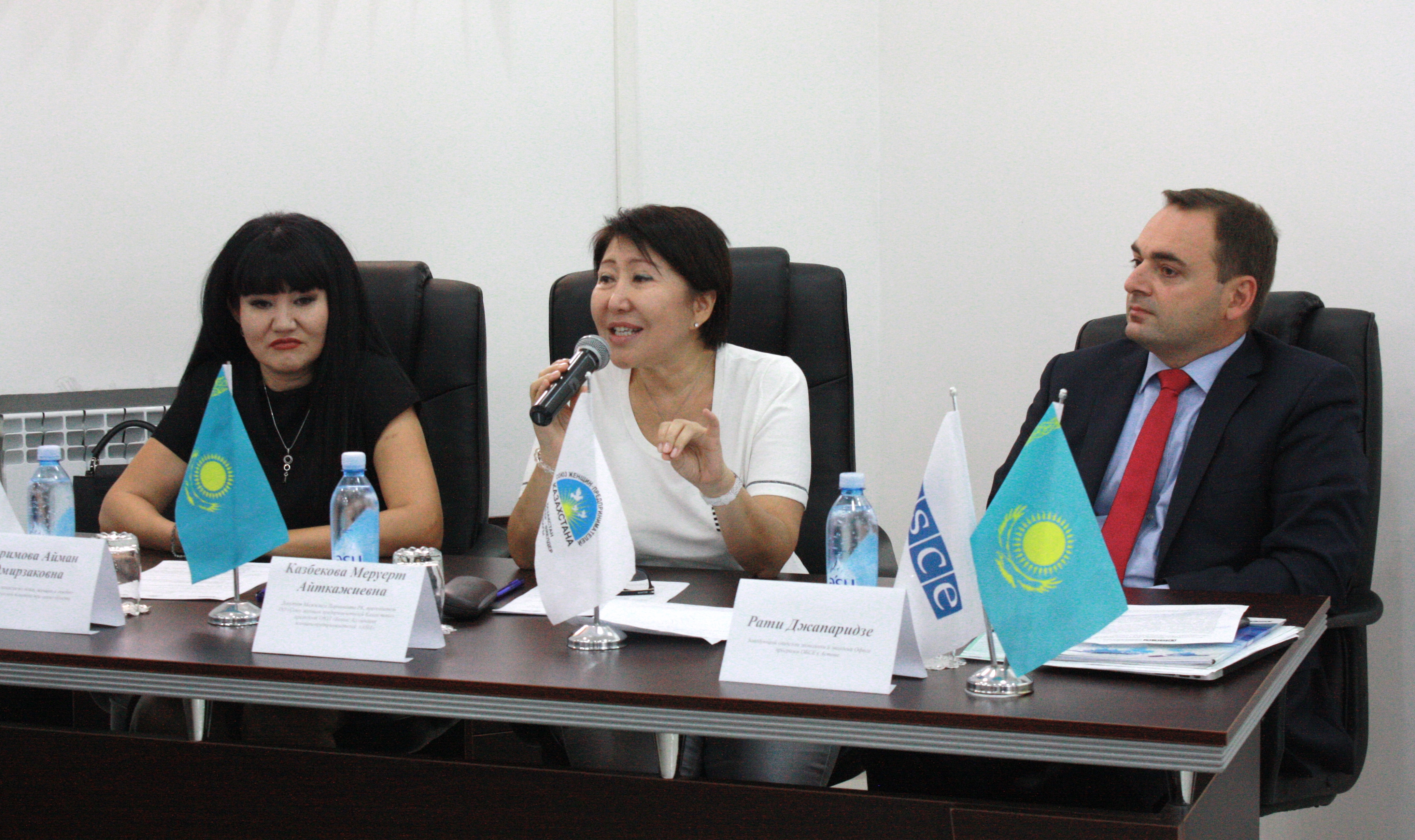 Meruert Kazbekova, Parliament Member and Women Entrepreneurs’ Union Chair, speaking on the challenges of female entrepreneurship in the villages, Taraz, 19 August 2016.