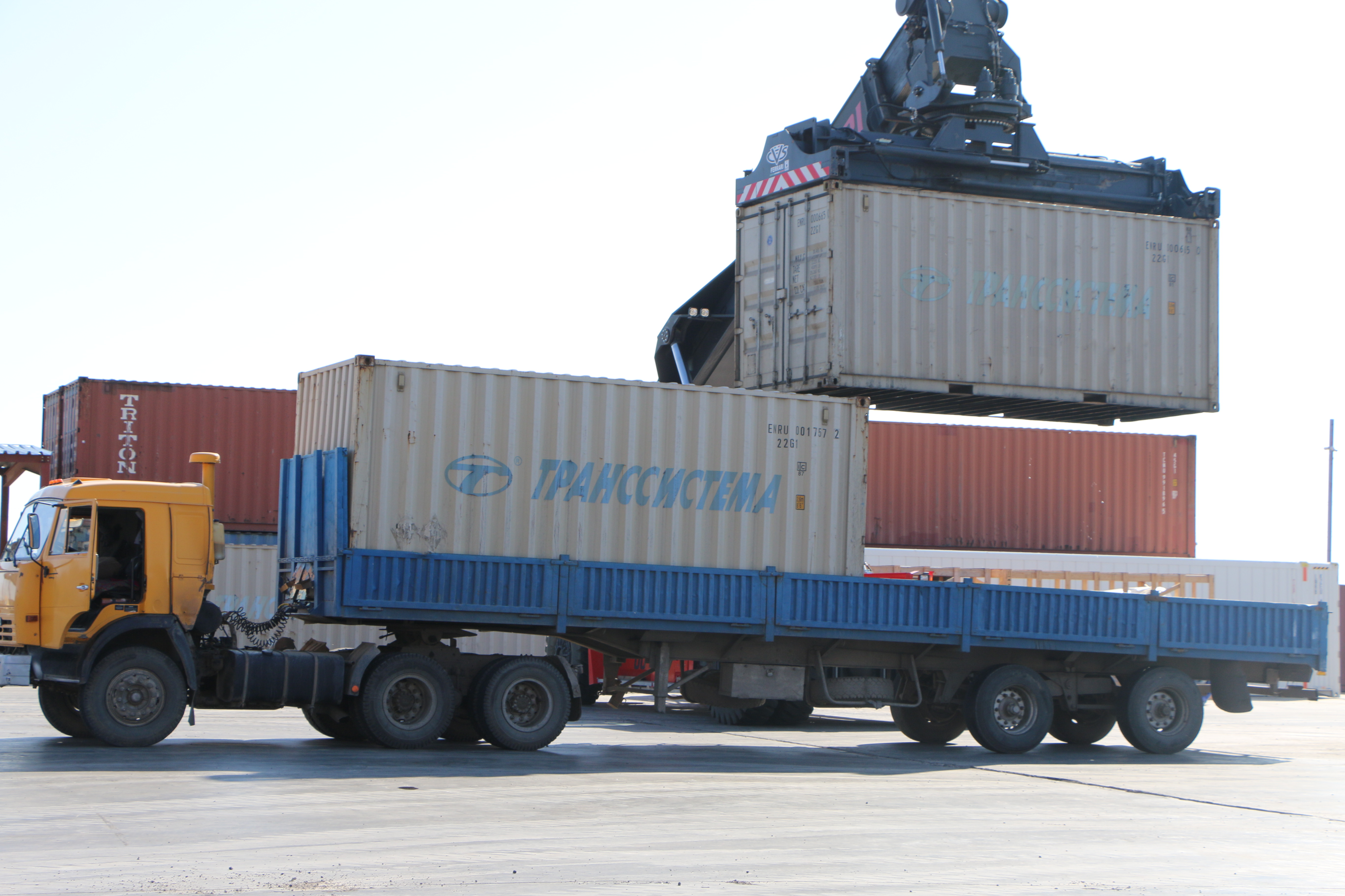 A truck is loaded with cargo at the Customs Clearance Centre in Astana, Kazakhstan where customs officials inspect cargo shipped to and through Kazakhstan. Astana, Kazakhstan, 29 September 2016