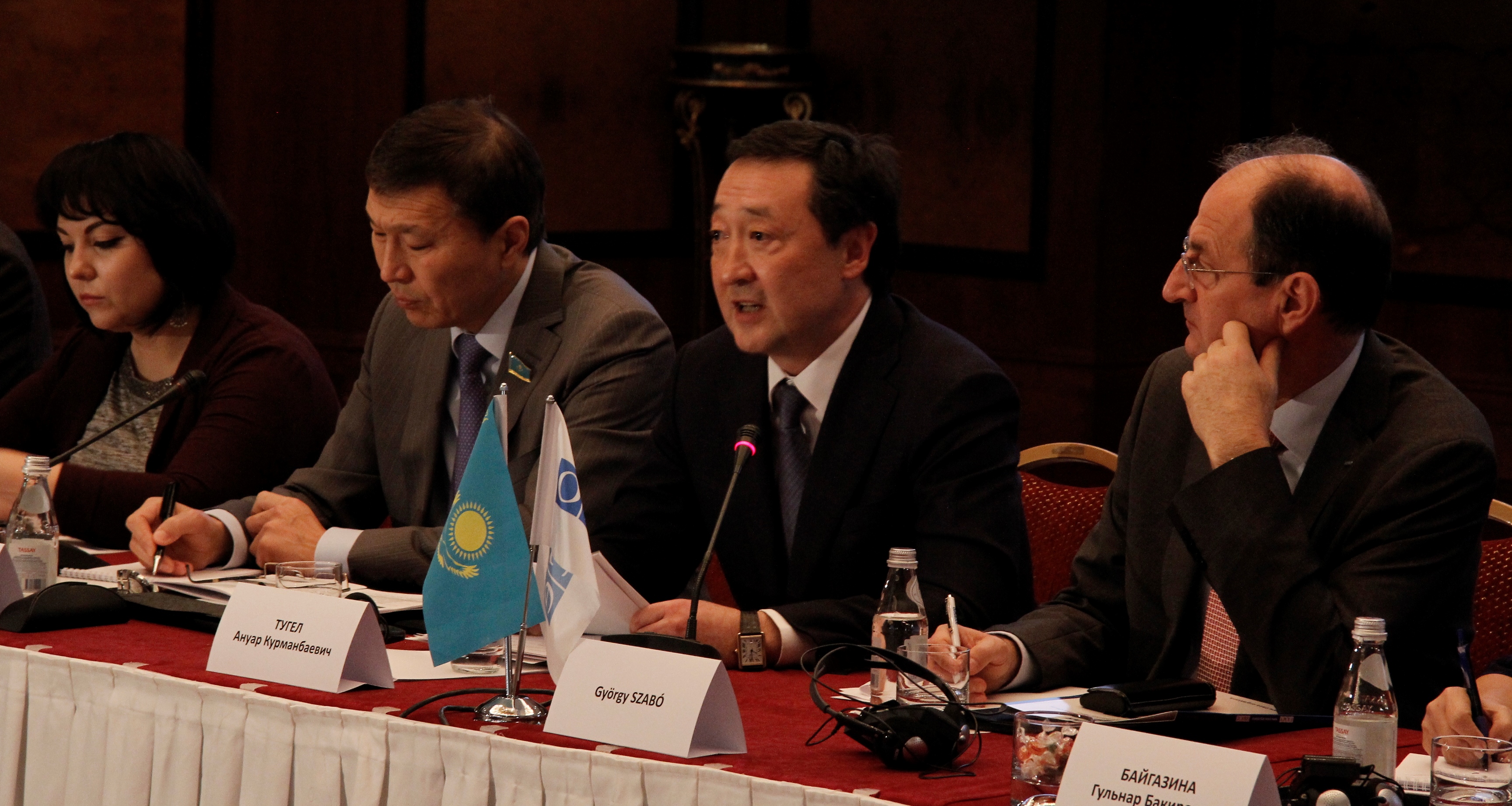 Anuar Tugel, Chairperson of the National Bar Association speaks at the Second national forum of defence lawyers, Almaty, 4 November 2016