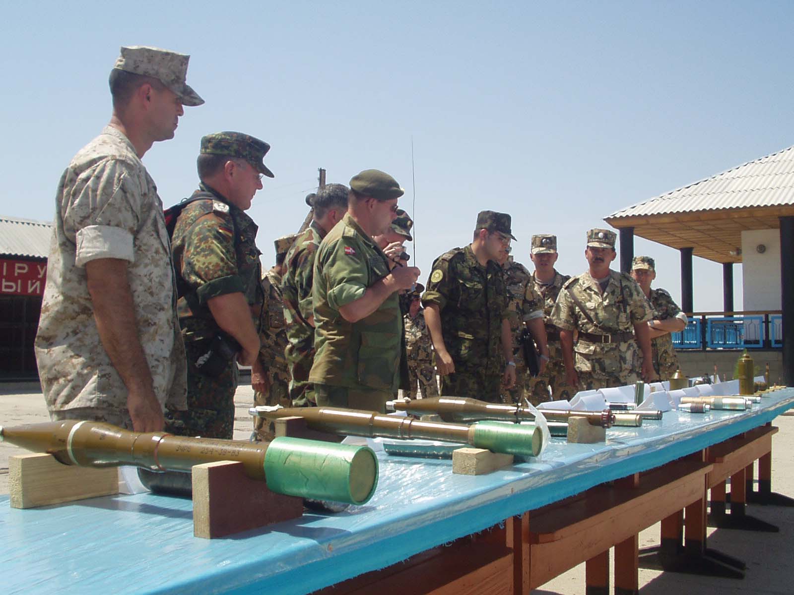 OSCE officials together with their Kazakhstani colleagues inspect ammunition stockpiles during an assessment visit on small arms and light weapons (SALW), Arys, Kazakhstan, June 2005.
