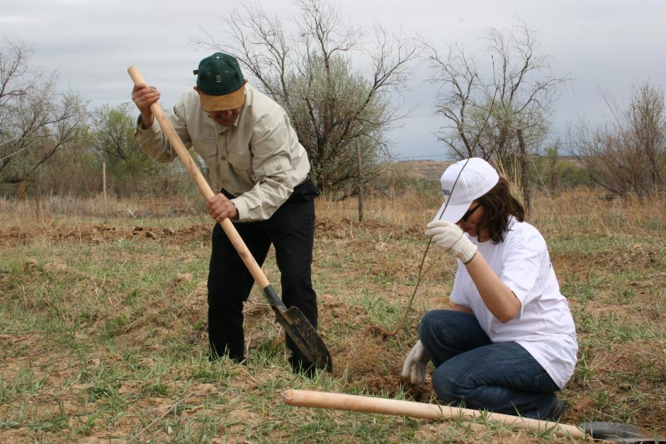 OSCE Centre representatives, together with journalists and environmental activists, planted ash trees in Charyn national park, south-east Kazakhstan, following a meeting on developing ecological tourism on 22 April 2006.