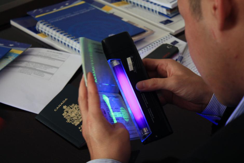 A workshop participant checks authenticity of a passport during a practical exercise, Aktau, 12 October 2011.
