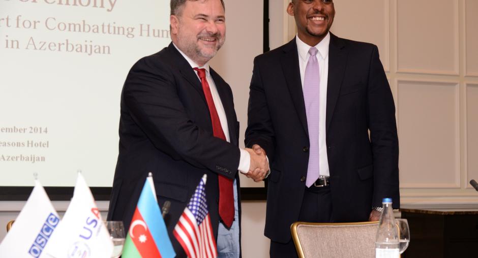 ATƏT və USAİD insan alveri ilə mübarizə sahəsində əməkdaşlıq etmək və bu mübarizəni dəstəkləmək məqsədilə Bəyannamə imzalayıb, Bakı, 20 noyabr 2014.