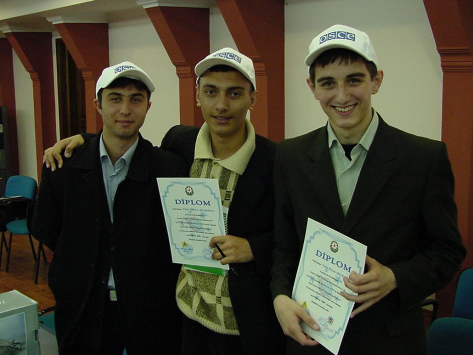 Winners of a quiz programme sponsored by the OSCE Office receive certificates and prizes in Baku, 15 May 2004.