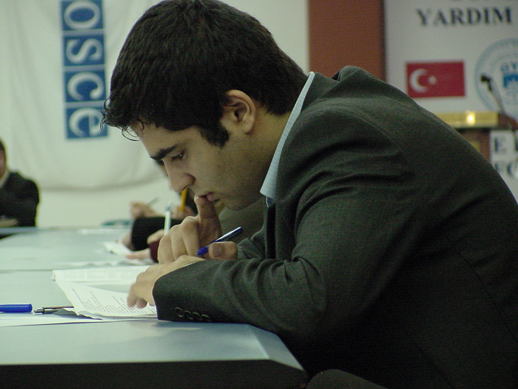 A young Azerbaijani answering questions during