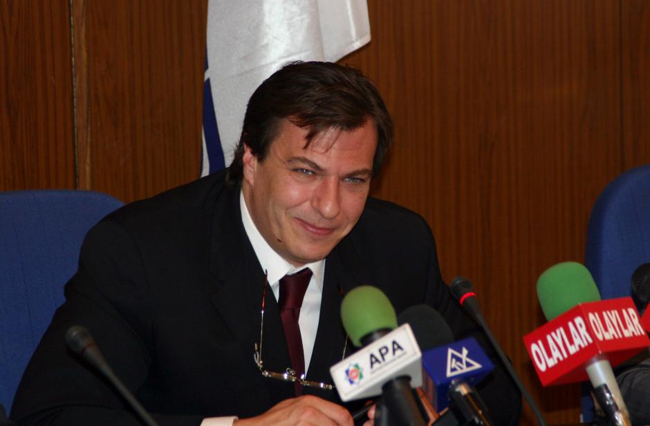 Jose Luis Herrero Ansola, Head of the OSCE Office in Baku, speaks at a news conference in Baku, 15 March 2007.