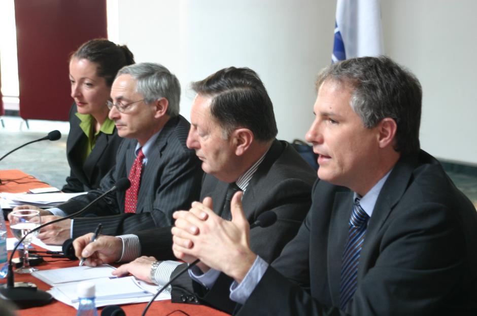 OSCE Office for Democratic Institutions and Human Rights (ODIHR) expert Jonathan Stonestreet (right) addresses a roundtable in Baku on the recommendations of the 2008 ODIHR Election Observation Mission to Azerbaijan, 8 April 2010.