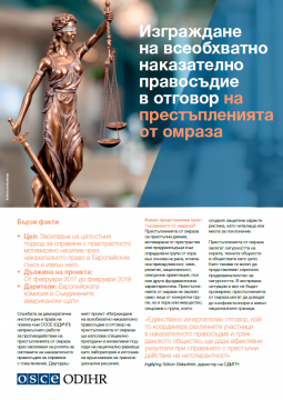 Службата за демократични институции и права на човека към ОССЕ (ОДИЧП) непрекъснато работи за противодействие на престъпленията от омраза чрез засилване на ролята на системите на наказателното правосъдие за справяне с това явление. Двугодишният проект «Изграждане на всеобхватно наказателно правосъдие в отговор на престъпленията от омраза» ще използва специално пригодени и иновативни подходи на национално равнище като лаборатория и източник на вдъхновение за транснационални решения.