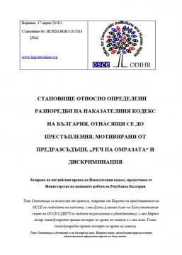 СТАНОВИЩЕ ОТНОСНО ОПРЕДЕЛЕНИ РАЗПОРЕДБИ НА НАКАЗАТЕЛНИЯ КОДЕКС НА БЪЛГАРИЯ, ОТНАСЯЩИ СЕ ДО ПРЕСТЪПЛЕНИЯ, МОТИВИРАНИ ОТ ПРЕДРАЗСЪДЪЦИ, „РЕЧ НА ОМРАЗАТА“ И ДИСКРИМИНАЦИЯ