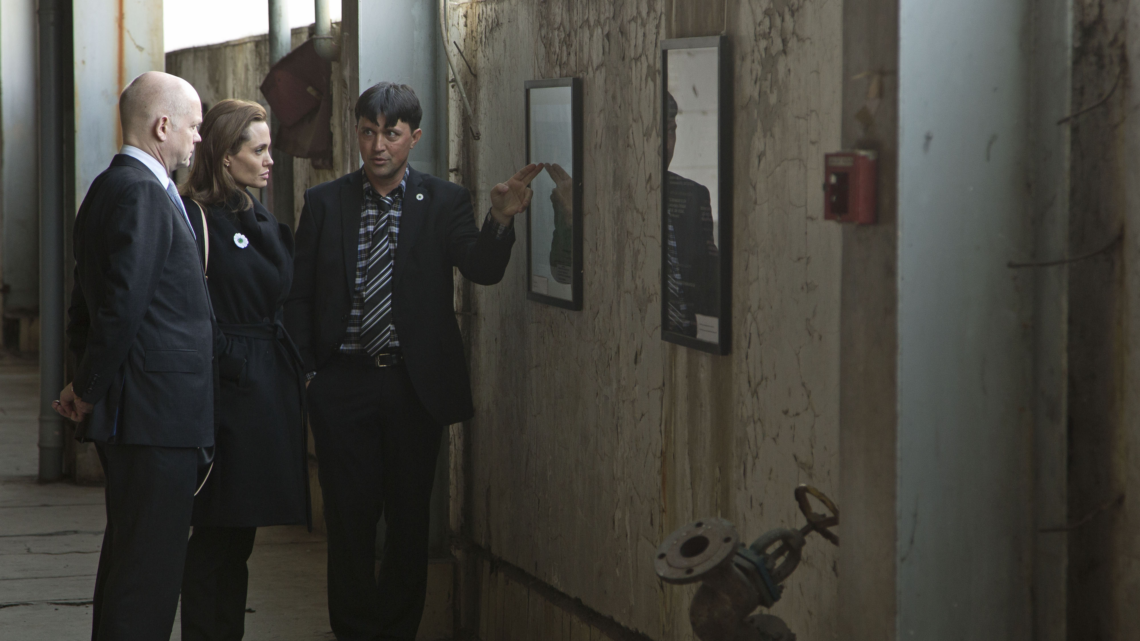 UNHCR Special Envoy Angelina Jolie and Foreign Secretary William Hague walking around the Memorial Centre Potocari with Hasan Hasanovic curator of the Memorial Centre Potocari (Srebrenica). (FCO/UK in Bosnia and Herzegovina)