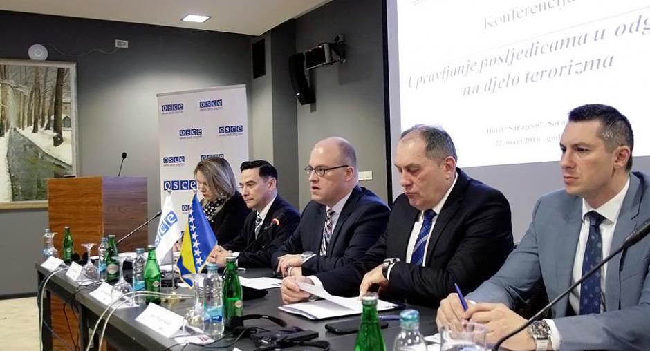 SARAJEVO, 22 March 2016 - A conference on consequence management in response to an act of terrorism, organized by the OSCE Mission to Bosnia and Herzegovina (BiH) and the Ministry of Security of BiH, gathered today over sixty participants from the security and judicial sectors. The conference aimed to strengthen capacities in managing terrorist related incidents and furthering inter-agency co-operation and co-ordination.