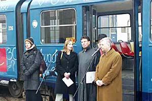 Sarajevo trams illustrate an education reform campaign launched by the OSCE Mission to Bosnia and Herzegovina, January 2003.