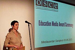 Daniela Bozic from TV Liberty received first prize for outstanding professionalism from the OSCE Mission to Bosnia and Herzegovina media awards, Sarajevo, 3 June 2003.