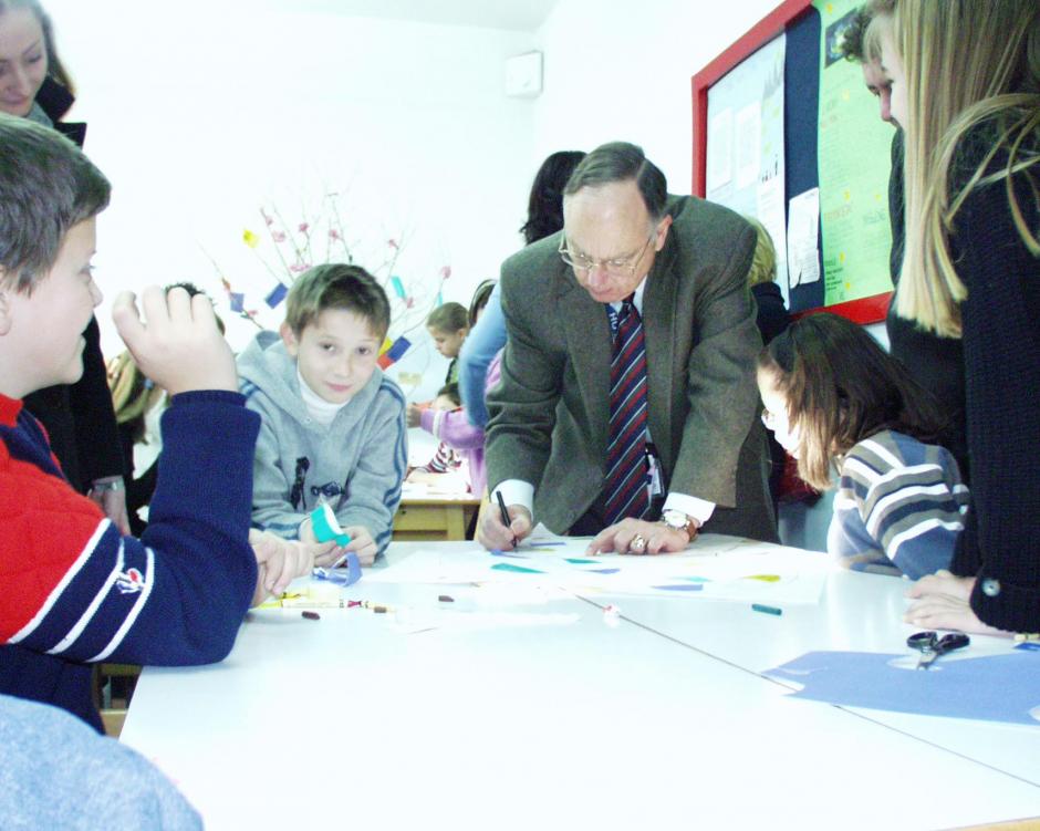 Head of OSCE Mission to Bosnia and Herzegovina, Robert M. Beecroft, celebrates Human Rights Day with students of Isak Samokovlija primary school, Sarajevo, 10 December 2003.