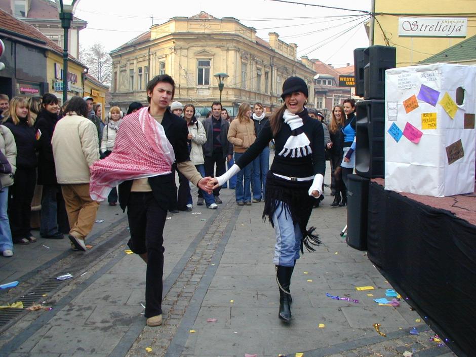 Students from the high school for catering and tourism celebrate Human Rights Day in Tuzla, 10 December 2003.