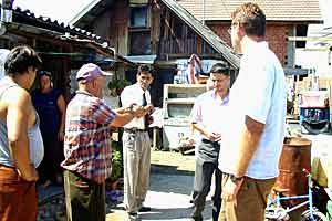 On Roma day, Samir Arnaut, Human Rights Officer with the OSCE Mission to Bosnia and Herzegovina, and Nihad Mesic, Education Officer, visited Roma in their settlement in Zivinice municipality (Ciljuge), 8 April 2005.