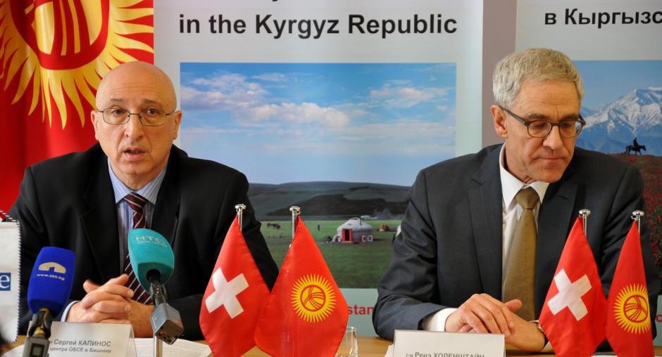 Ambassador Sergey Kapinos, Head of the OSCE Centre in Bishkek, and René Holenstein, Ambassador of Switzerland to the Kyrgyz Republic representing the Swiss Chairmanship-in-Office, presented priorities of their co-operation on 29 January 2014 in Bishkek.