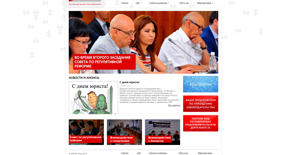 Interested parties can follow the reform progress by visiting the regulatory review’s Facebook page: https://www.facebook.com/www.sar.kg .