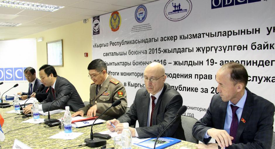 BISHKEK, 19 April 2016 – An OSCE Centre in Bishkek-supported report detailing the protection of human rights within the Kyrgyz Armed Forces and recommendations to the Kyrgyz Government on how to improve the situation was presented in Bishkek today by the Kylym Shamy NGO, the Kyrgyz Ombudsman Office, the National Centre on the Prevention of Torture and the General Staff of the Armed Forces.