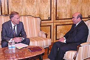 Head of OSCE Centre in Bishkek Ambassador Markus Mueller (left) meets with President Akayev of Kyrgyzstan, 19 March 2004.
