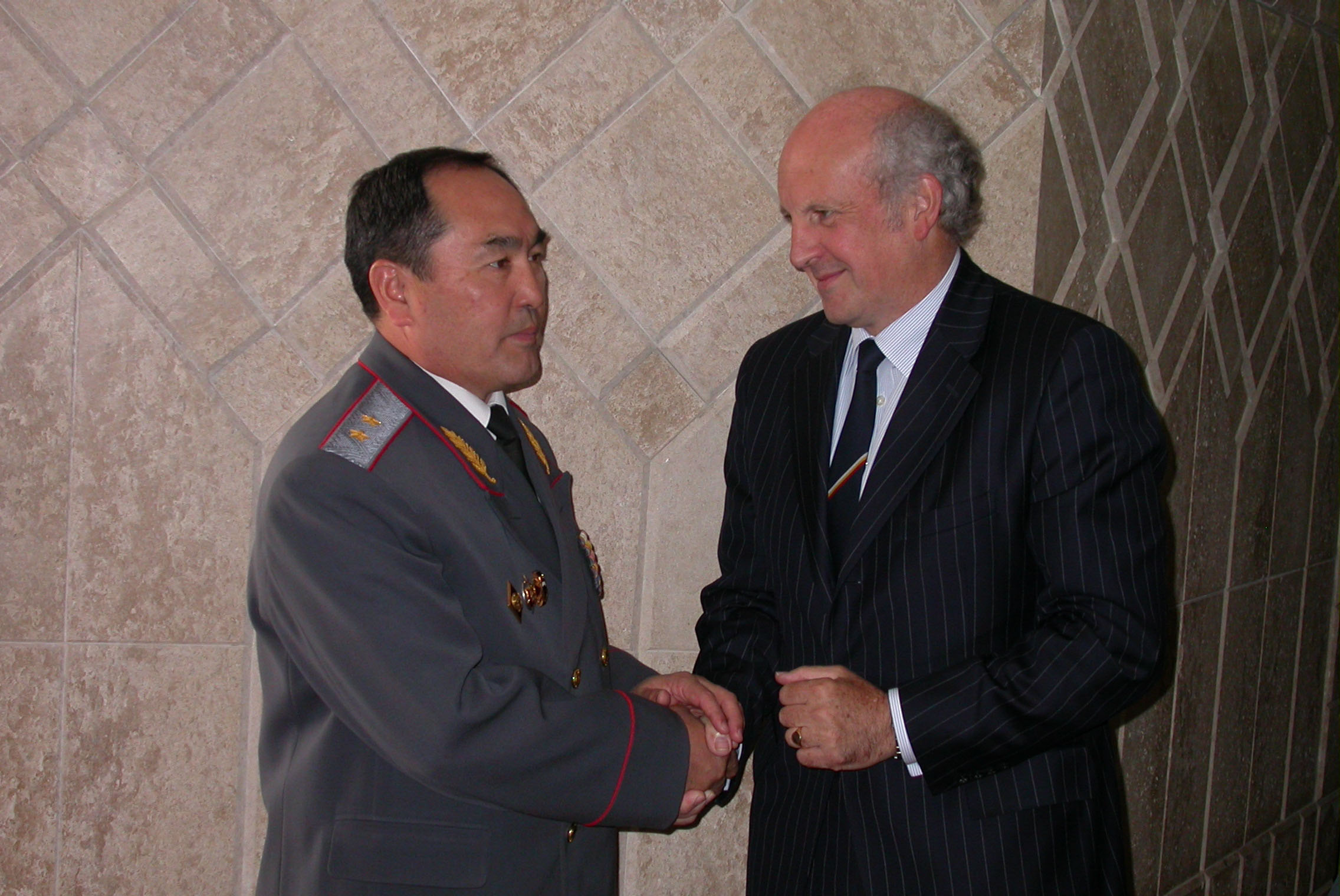 OSCE Senior Police Adviser, Richard Monk (right), and Kyrgyz Police Academy Rector General Beksultan Ishimov signed a key agreement on a comprehensive OSCE police assistance programme on 7 August 2003.